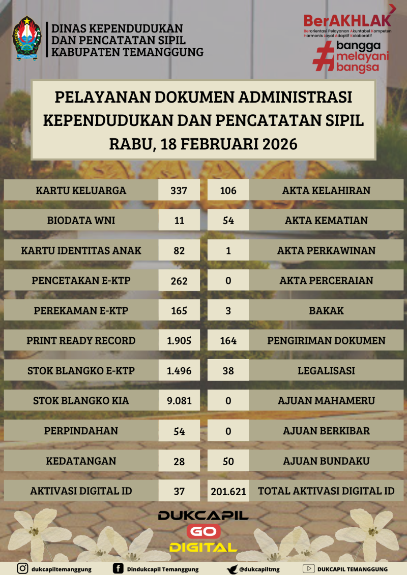 Berita Kategori: Smart Government (Pemerintah Cerdas) Bidang Pengelolaan Informasi Administrasi Kependudukan dan Pemanfaatan Data Jumat, 06/03/2026 14:08 0 REKAPITULASI PELAYANAN DOKUMEN ADMINISTRASI KEPENDUDUKAN DAN PENCATATAN SIPIL Selengkapnya Kategori: Smart Government (Pemerintah Cerdas) Bidang Pengelolaan Informasi Administrasi Kependudukan dan Pemanfaatan Data Kamis, 05/03/2026 14:08 0 REKAPITULASI PELAYANAN DOKUMEN ADMINISTRASI KEPENDUDUKAN DAN PENCATATAN SIPIL Selengkapnya Kategori: Smart Government (Pemerintah Cerdas) Bidang Pengelolaan Informasi Administrasi Kependudukan dan Pemanfaatan Data Rabu, 04/03/2026 14:07 0 REKAPITULASI PELAYANAN DOKUMEN ADMINISTRASI KEPENDUDUKAN DAN PENCATATAN SIPIL Selengkapnya Kategori: Smart Government (Pemerintah Cerdas) Bidang Pengelolaan Informasi Administrasi Kependudukan dan Pemanfaatan Data Selasa, 03/03/2026 14:07 0 REKAPITULASI PELAYANAN DOKUMEN ADMINISTRASI KEPENDUDUKAN DAN PENCATATAN SIPIL Selengkapnya Kategori: Smart Government (Pemerintah Cerdas) Bidang Pengelolaan Informasi Administrasi Kependudukan dan Pemanfaatan Data Senin, 02/03/2026 14:06 0 REKAPITULASI PELAYANAN DOKUMEN ADMINISTRASI KEPENDUDUKAN DAN PENCATATAN SIPIL Selengkapnya Kategori: Smart Government (Pemerintah Cerdas) Bidang Pengelolaan Informasi Administrasi Kependudukan dan Pemanfaatan Data Jumat, 27/02/2026 14:06 0 REKAPITULASI PELAYANAN DOKUMEN ADMINISTRASI KEPENDUDUKAN DAN PENCATATAN SIPIL Selengkapnya Kategori: Smart Government (Pemerintah Cerdas) Bidang Pengelolaan Informasi Administrasi Kependudukan dan Pemanfaatan Data Rabu, 25/02/2026 14:05 0 REKAPITULASI PELAYANAN DOKUMEN ADMINISTRASI KEPENDUDUKAN DAN PENCATATAN SIPIL Selengkapnya Kategori: Smart Government (Pemerintah Cerdas) Bidang Pengelolaan Informasi Administrasi Kependudukan dan Pemanfaatan Data Senin, 23/02/2026 14:04 0 REKAPITULASI PELAYANAN DOKUMEN ADMINISTRASI KEPENDUDUKAN DAN PENCATATAN SIPIL Selengkapnya Kategori: Smart Government (Pemerintah Cerdas) Bidang Pengelolaan Informasi Administrasi Kependudukan dan Pemanfaatan Data Jumat, 20/02/2026 14:04 0 REKAPITULASI PELAYANAN DOKUMEN ADMINISTRASI KEPENDUDUKAN DAN PENCATATAN SIPIL Selengkapnya Kategori: Smart Government (Pemerintah Cerdas) Bidang Pengelolaan Informasi Administrasi Kependudukan dan Pemanfaatan Data Kamis, 19/02/2026 14:03 0 REKAPITULASI PELAYANAN DOKUMEN ADMINISTRASI KEPENDUDUKAN DAN PENCATATAN SIPIL Selengkapnya Kategori: Smart Government (Pemerintah Cerdas) Bidang Pengelolaan Informasi Administrasi Kependudukan dan Pemanfaatan Data Rabu, 18/02/2026 14:03 0 REKAPITULASI PELAYANAN DOKUMEN ADMINISTRASI KEPENDUDUKAN DAN PENCATATAN SIPIL Selengkapnya Kategori: Smart Government (Pemerintah Cerdas) Bidang Pengelolaan Informasi Administrasi Kependudukan dan Pemanfaatan Data Jumat, 13/02/2026 14:02 0 REKAPITULASI PELAYANAN DOKUMEN ADMINISTRASI KEPENDUDUKAN DAN PENCATATAN SIPIL Selengkapnya Prev12345NextLast